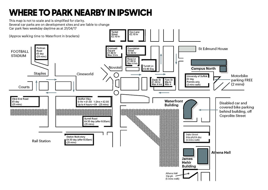 For SatNav use the postcode Long Street, Ipswich. IP3 8AH. This will take you to our car park.